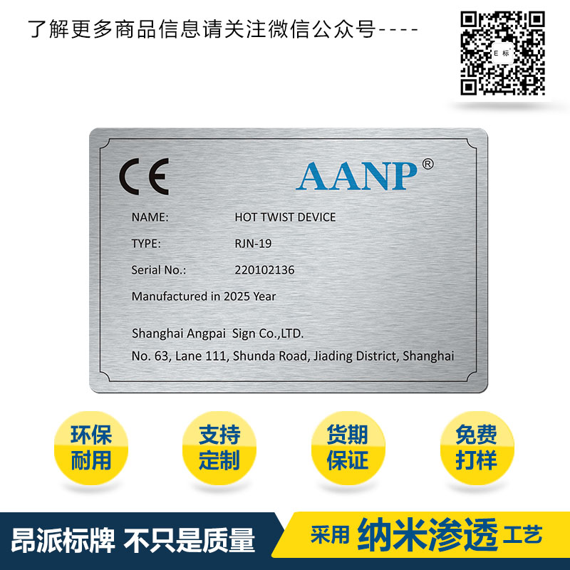 體系,對(duì)你的需求我們有絕對(duì)的信心做好。昂派標(biāo)牌”將不斷努力創(chuàng)造出更高品質(zhì)的銘牌,為用戶(hù)提供更佳服
